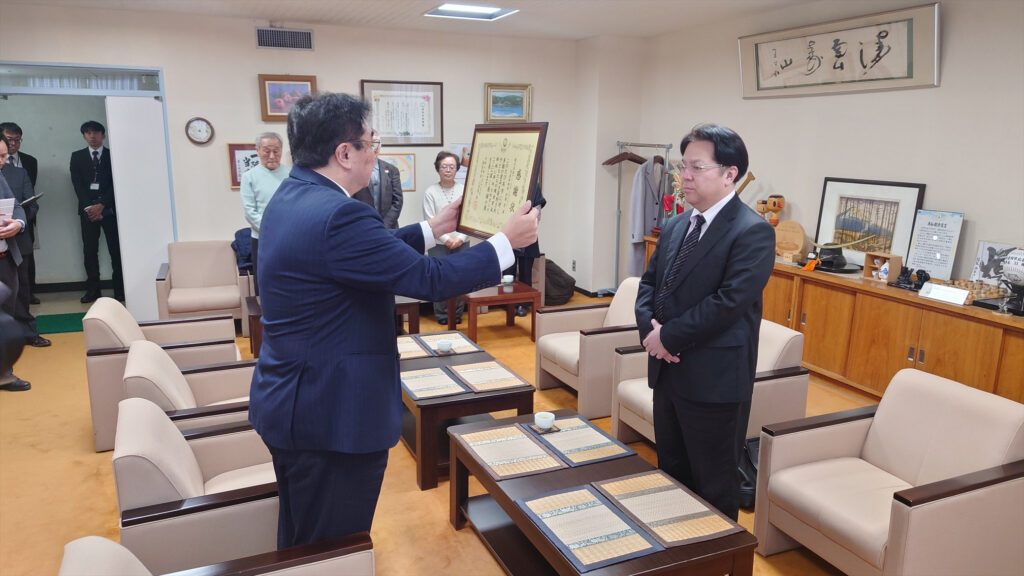 また、この寄附行為に対し、登別市から感謝状をいただきました。