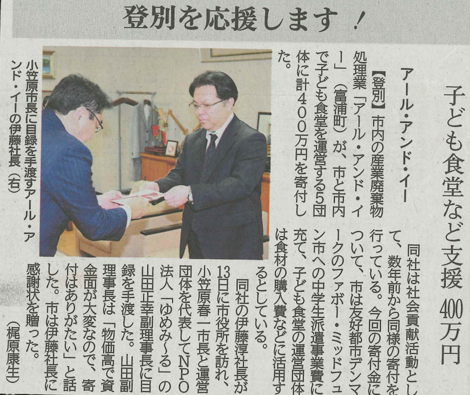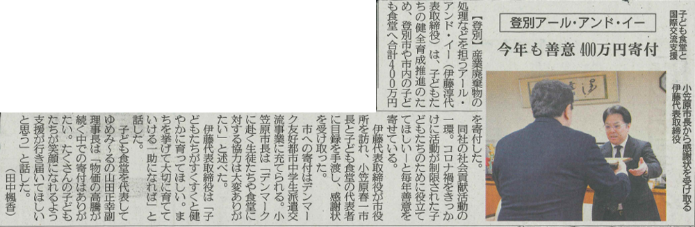 我が社のSDGsテーマの一つである「共生(社会の貢献)」の一環として、2026年も「子どもたちの健全な育成にかかわる事業」として登別市と各団体に寄付をさせていただきました。